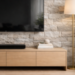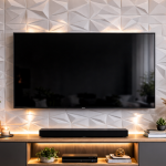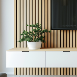 Holzlamellen gehören aktuell zu den beliebtesten Wohntrends. Sie bringen Wärme in den Raum und sorgen gleichzeitig für eine moderne und elegante Optik. Besonders schön wirkt eine TV Wand, wenn der Fernseher direkt vor einer Lamellenwand montiert wird.